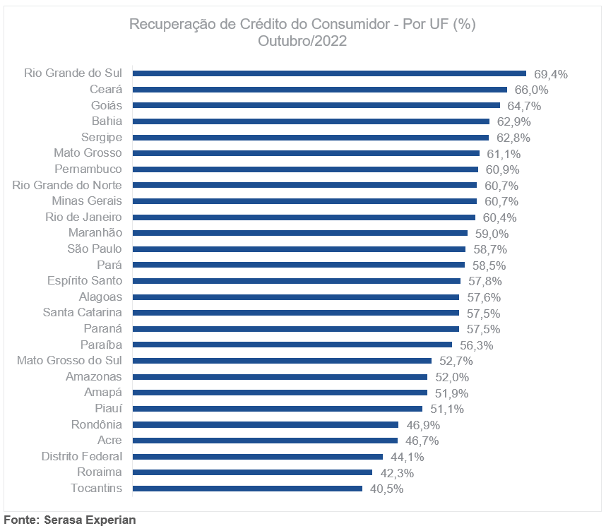 De acordo com o levantamento, o Sul do país concentra a maior parte das dívidas inadimplentes pagas em até 60 dias de negativação (62,5%). Na sequência, aparece o Nordeste, com 61,2%. O sudeste ficou em terceiro lugar, marcando 59,5%, seguido pelo Centro-Oeste (57,8%) e Norte (50,3%).