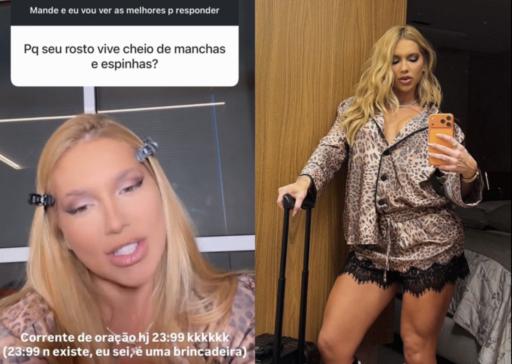 Virginia explicou ainda que as manchas são resquícios desse período e que o tratamento exige consistência e tempo, algo que, por causa da agenda intensa, ela nem sempre consegue cumprir: “Para tratar mancha não é tão simples assim, ainda mais eu que não tenho tempo para fazer os lasers mais pesados. Estou sempre gravando, sempre em alguma produção. Mas eu tô tratando e vai dar certo. As manchas vão sair, nem que seja na faca. Amém”, brincou.