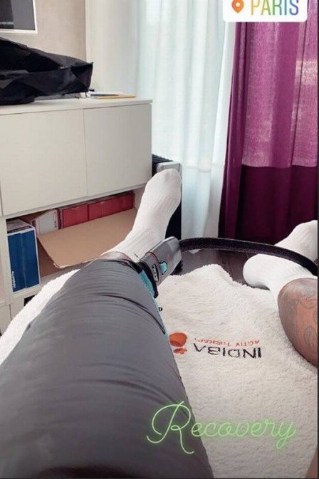 Nesta segunda-feira (14), Neymar publicou uma foto nas redes sociais, com um aparelho no local machucado. Na legenda o jogador escreveu em inglês, "Recuperação". Isso ocorreu menos de 24 horas após ele sair machucado da partida.
