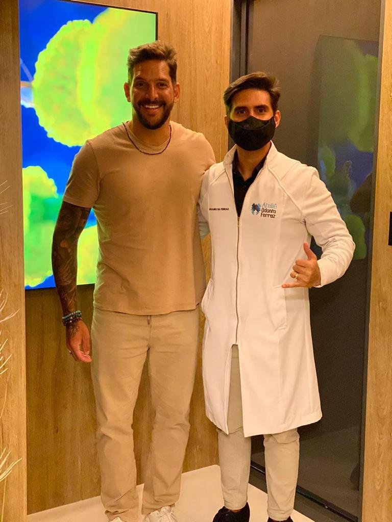 Para o alinhamento dos dentes, Felipe realizou o tratamento ortodôntico por meio do Invisalign - um alinhador dentário alternativo aos aparelhos ortodônticos tradicionais que permite alinhar os dentes de maneira muito mais discreta, sem utilizar bráquetes nem fios metálicos.