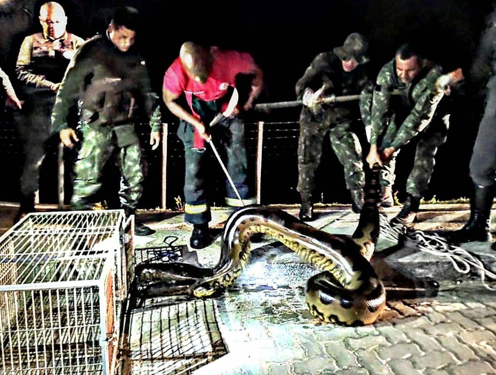 Equipes do Corpo de Bombeiros e da Companhia Independente de Polícia de Proteção Ambiental (CIPPA) resgataram uma sucuri, com sete metros de comprimento e cerca de 130 kg, na cidade de Porto Seguro, no sul baiano.