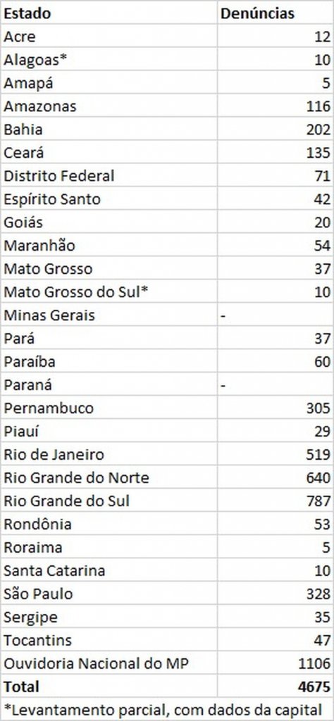 No entanto, o número de denúncias pode ser ainda maior, já que elas também podem ser feitas em outros órgãos, a exemplo das ouvidorias dos governos e nas secretarias de saúde.