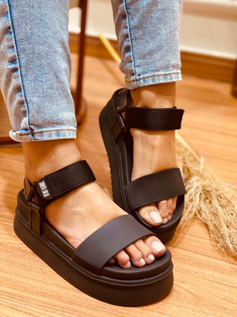 Outra opção para quem adora sandálias são as acolchoadas. Fashionista, o calçado com volume nas tiras traz um toque de modernidade ao visual, além de proporcionar conforto e estilo. "Essa é uma ótima opção para quem não quer largar o salto, mas também preza pelo conforto", pontua a empresária.