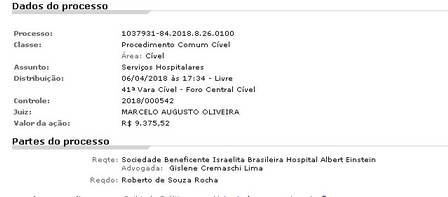O processo também diz que o cantor foi procurado pelo Hospital "inúmeras" vezes para o pagamento da quantia, porém, ele não foi encontrado. Na ocasião, ele informou um endereço de São Paulo, mas mora atualmente no Rio de Janeiro.