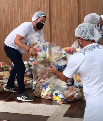 Ainda foram entregues 158 cestas de alimentos contendo feijão, arroz, farinha, flocão de milho, macarrão, óleo, açúcar, leite em pó, café, biscoito e panetone, favorecendo as 135 famílias do MORHAN (Movimento de Reintegração de Pessoas Atingidas pela Hanseníase), 20 famílias da APALBA (Associação de Portadores de Albinismo da Bahia) e 3 famílias da comunidade de Santa Luzia do Pilar, beneficiando cerca de 500 pessoas. A instituição desenvolve diversos programas sociais, dentre esses, a Caravana Fraterna Carlos Murion, que promove ações voltadas a pessoas e famílias em situação de vulnerabilidade e risco pessoal e aos membros do MORHAN e da APALBA, portadores de hanseníase e albinismo. Além da assistência material, a Caravana trabalha também com o apoio social e emocional aos assistidos.