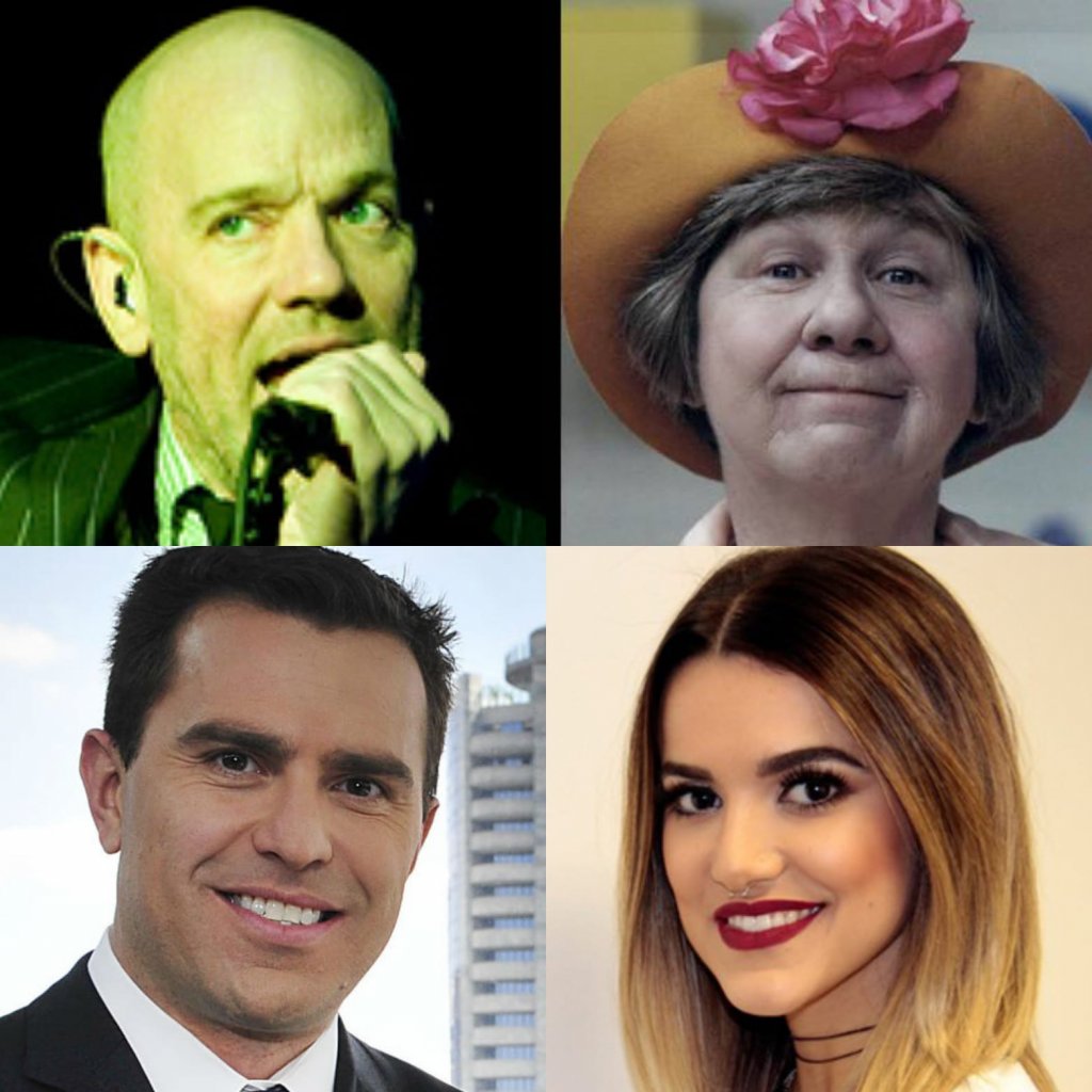 E vamos aos aniversariantes deste 04 de Janeiro! E começo pelo grande artista, cantor, músico, compositor e produtor norte-americano, que começou sua carreira na década de 1980 e me encanta com a garra como ele canta, seus sucessos imortalizados no "R.E.M", que infelizmente esta extinta desde 2011 e soma 18 álbuns, 12 obras em vídeo e clássicos que o mundo conhece... Michael Stipe! Ela a saudosa, querida e talentosa humorista e atriz brasileira, que começou sua carreira na década de 1960, ultrapassa 50 anos de carreira, incluindo personagens como a lendária ¨Dona Catifunda¨ de 1961 brilhou em: ¨O riso é o limite¨, ¨A praça é nossa¨, ¨Escolinha do professor Raimundo¨ e nos deixou em 20 de Dezembro de 2019 aos 83 anos... Zilda Cardoso. Ele o talentoso jornalista e apresentador brasileiro, que com seu profissionalismo e credibilidade, começou sua careira na década de 1990 e faz um brilhante trabalho... Rodrigo Bocardi! E finalizo com ela que atua, dubla, canta, compõe e toca guitarra, começou sua carreira ainda na década de 2000 e vem seguindo uma bela trajetória como ¨Show Girl¨... Manu Gavassi! Parabéns!!! #MichaelStipe #ZildaCardoso #RodrigoBocardi #ManuGavassi
