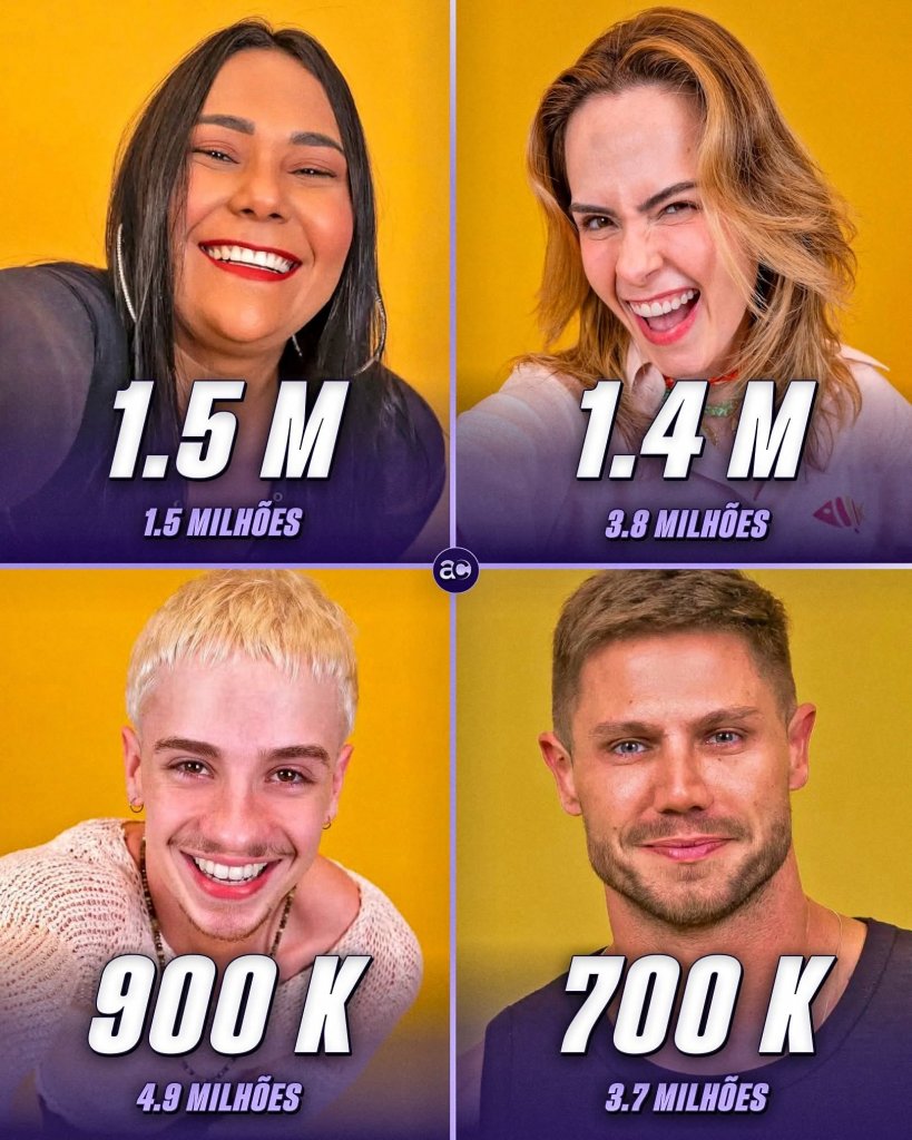 Confira os participantes do BBB 26 que mais ganharam seguidores no Instagram!