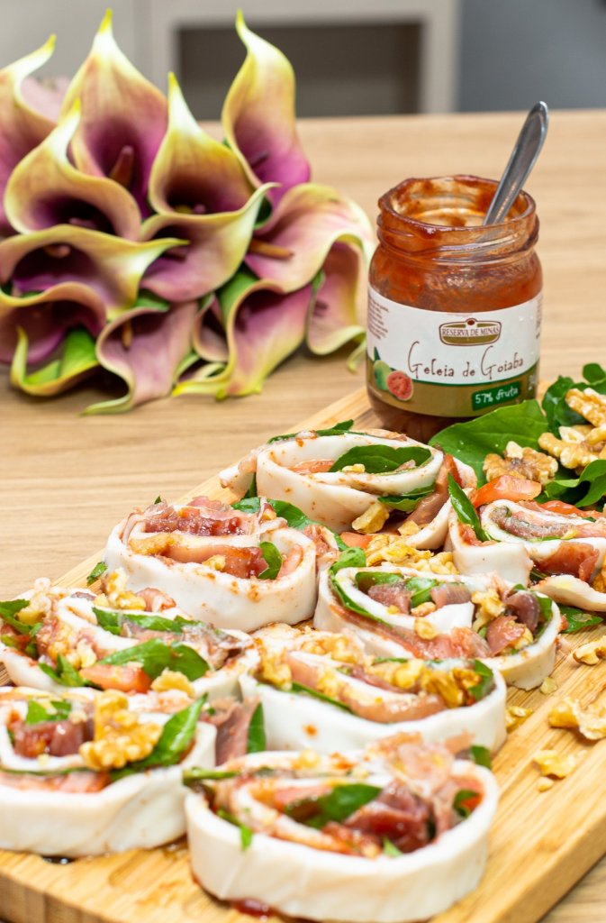O verão chegou e nada melhor do que experimentar novos sabores que trazem a leveza dessa estação. Para quem gosta de opções que combinam ingredientes doces e salgados a Reserva de Minas tem duas sugestões. A primeira é um Rocambole de Parma com Geleia de Goiabada Reserva de Minas que mescla a intensidade do embutido italiano com o sabor exclusivo do doce de goiaba envoltos em uma deliciosa manta de muçarela de búfala. Para trazer mais sofisticação e novas texturas à essa preparação, a receita leva ainda um toque picante da rúcula e a crocância adocicada das nozes, proporcionando uma explosão de sabores.