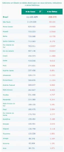 Confira abaixo a situação epidemiológica em todos os estados: