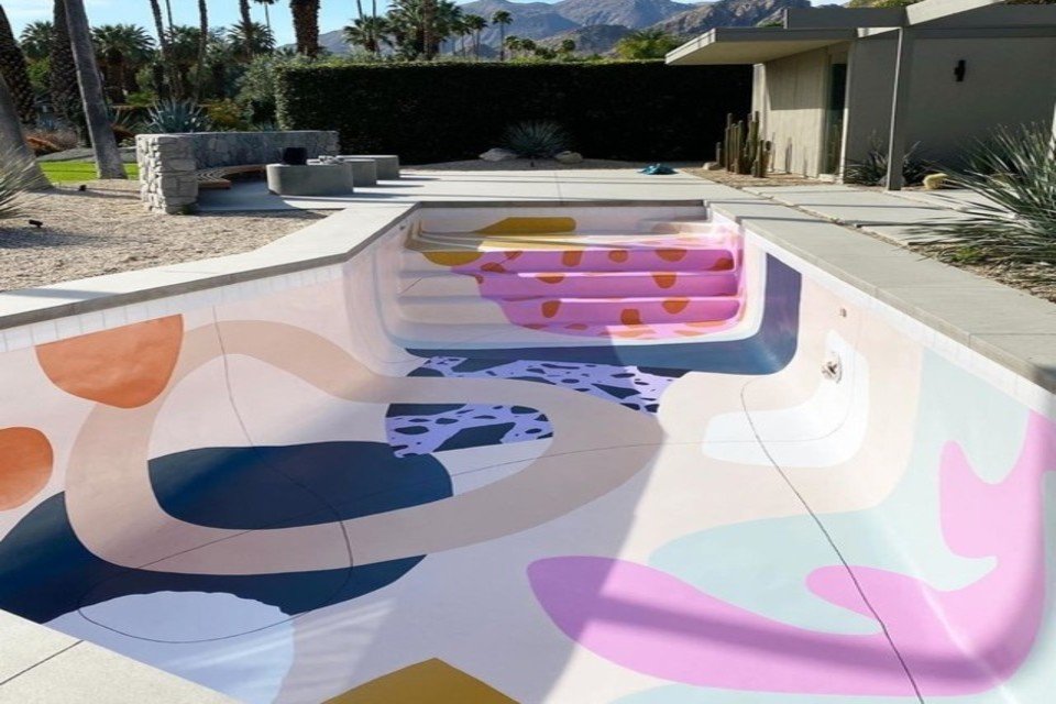 Designer bomba na web ao pintar piscinas multicoloridas à mão