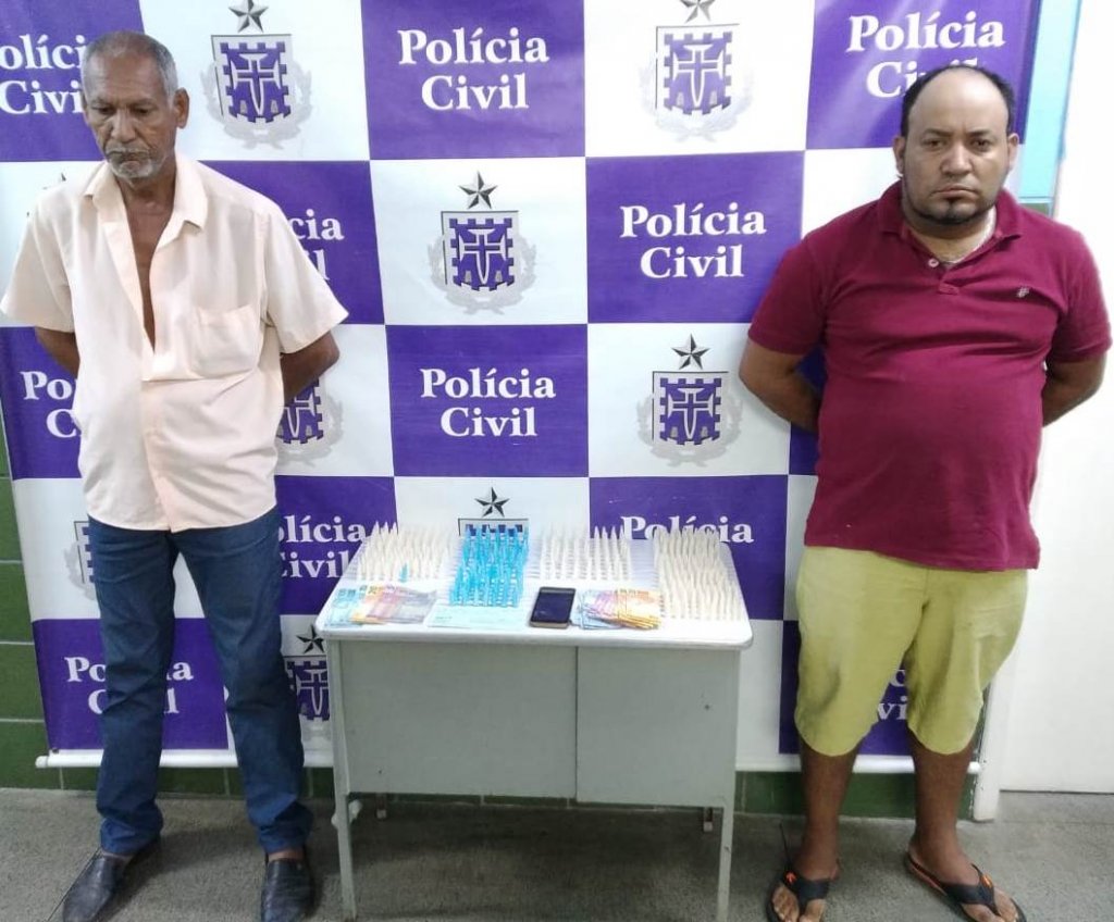 Uma dupla foi presa após ser encontrada com 498 pinos de cocaína, prontos para a venda, a quantia de R$ 495, um cheque no valor de R$ 2,7 mil e dois celulares, no povoado de Baraúnas, em Senhor do Bonfim, na quinta-feira (19).