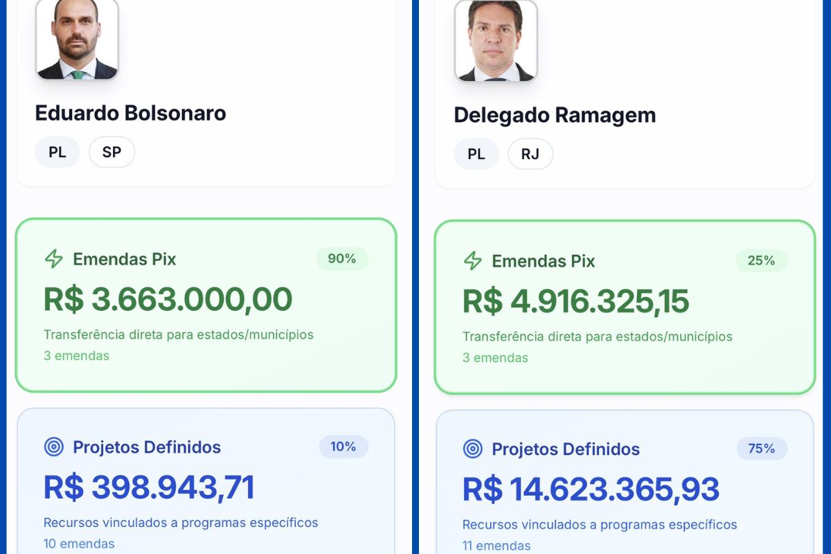 • Eduardo Bolsonaro e Ramagem receberam Emendas Pix milionárias, aponta plataforma de transparência política