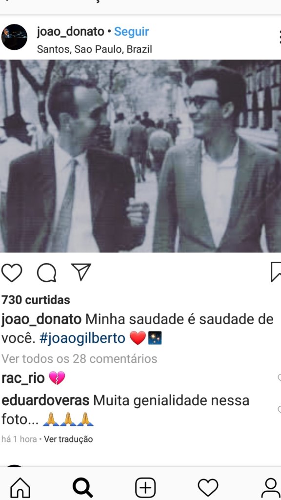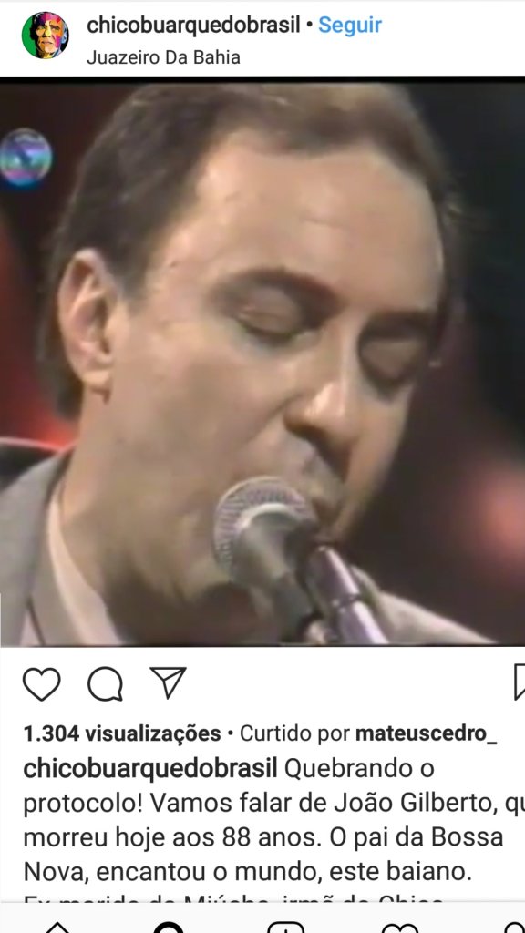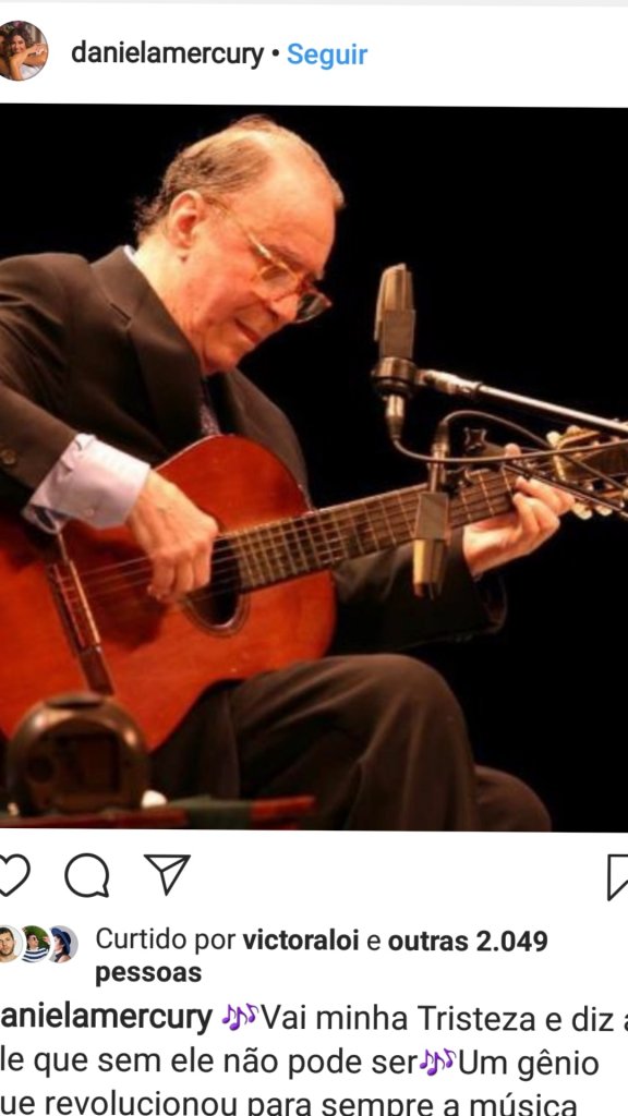O nosso baiano João Gilberto morreu neste sábado, aos 88 anos. A causa da morte ainda não foi divulgada. Ele deixa três filhos, João Marcelo, Bebel e Luisa. Infelizmente, o inventor da bossa nova foi aos poucos se excluindo da vida. Vivia sempre recluso e só tinha contato com os poucos familiares. A decadência física, as questões de família, os problemas de dinheiro, os contratos mal feitos, enfim, um conjunto de episódios graves acabou baqueando o grande artista. Na internet, alguns famosos se manifestaram. A autora Glória Perez, afirmou em seu Twitter: "Sábado triste: morreu João Gilberto, o pai da bossa nova." O cantor Roger Moreira, da banda Ultraje a Rigor, também externou seu pesar: "Morreu João Gilberto. Uma pena." O crítico musical Rodrigo Faour lamentou: "Talvez um dia o Brasil entenda quem foi o João Gilberto. Seja como for, sua semente rendeu árvores, galhos, flores, frutos e novas sementes pelos quatro cantos do mundo nos mais variados estilos musicais. Sua batida diferente, seu jeito de cantar, de dividir, usar o microfone, sua forma de gravar e o perfeccionismo à beira do absurdo... tudo em prol da música mais suave e pura em sua essência. Viva João e sua bossa sempre nova." Caetano Veloso, em vídeo divulgado, afirmou: "João Gilberto é, no meu ponto de vista, o maior artista brasileiro de todos. Porque, num momento exato, preciso da minha vida, (ele) apareceu, dando o sentido mais profundo à percepção das artes em qualquer estágio. Eu nem sei o que dizer pelo fato de que ele deixou de existir como pessoa física." O pianista João Donato em uma foto com João declarou: "Minha saudade é saudade de você". Nelson Motta, em depoimento à Globonews, também lamentou: "Para mim João é o maior artista brasileiro, um homem que não só inventou a bossa nova, uma nova forma de cantar e tocar violão, mas também um homem que transformou o jazz americano, transformou a música do mundo inteiro, e que durante toda sua vida só levou delicadeza, coisas amorosas, coisas leves. A música de João Gilberto é identificada com o momento de maior paz e leveza que a música pode trazer a uma pessoa. Ele influenciou decisivamente a vida e a carreira da minha geração inteira e de todos os grandes cantores e compositores que vieram depois dele. Todos eram seus enormes fãs e todos tiveram sua influência maravilhosa.” Gal Costa, um dos ícones da MPB, afirmou: "Se foi João Gilberto o maior gênio da música brasileira. Influência definitiva no meu canto. Fará muita falta mas seu legado é importantíssimo para o Brasil e para o mundo." A também cantora Daniela Mercury, escreveu em suas redes sociais: "Vai minha tristeza e diz a ele que sem ele não pode ser", citando Chega de Saudade, um dos clássicos eternizados na voz de João Gilberto. Ela acrescentou ainda: "Um gênio que revolucionou para sempre a música popular brasileira. João criou a Bossa Nova e me influenciou imensamente. Um dia ele me disse que eu era de sua família. E sou mesmo. Ele ensinou todos nós a cantar da forma mais bela do mundo. Vá em paz, mestre!" Já Chico Buarque de Holanda postou um vídeo onde o compositor canta "Desafinado". Na legenda, disparou: "O pai da Bossa Nova encantou o mundo".