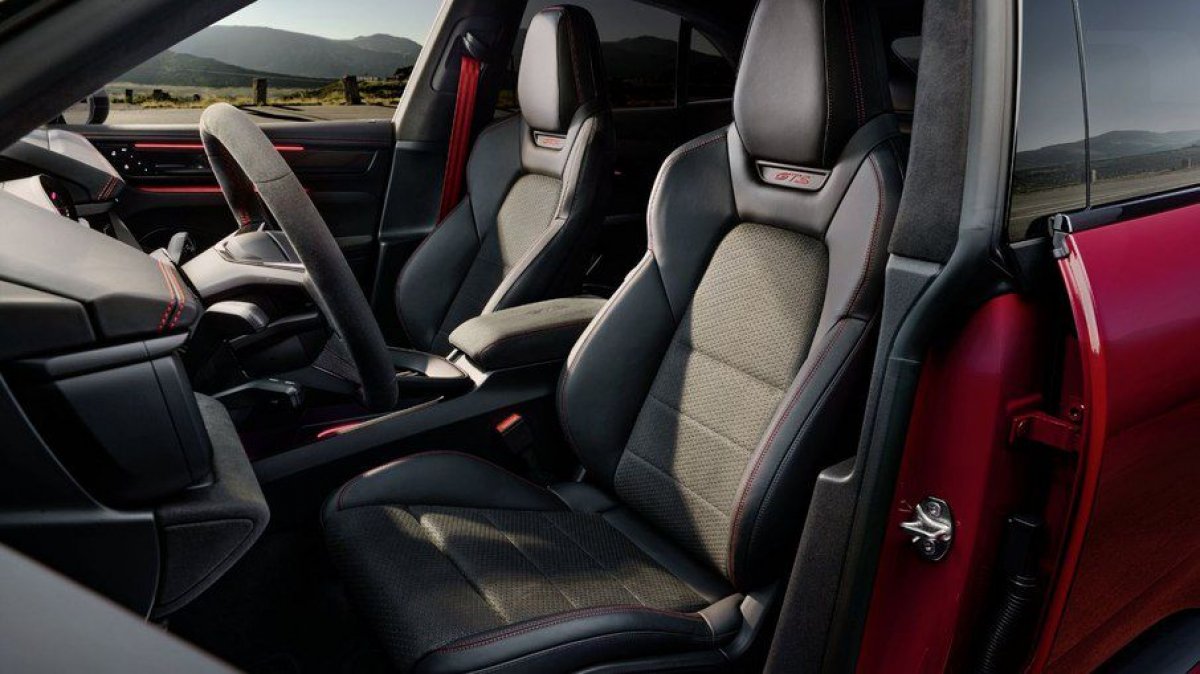 No interior, o SUV mantém a proposta esportiva da linha GTS com amplo uso de Race-Tex, material sintético de alta aderência utilizado em volante, bancos e painéis. A Porsche também oferece diferentes combinações de cores e costuras para personalização.