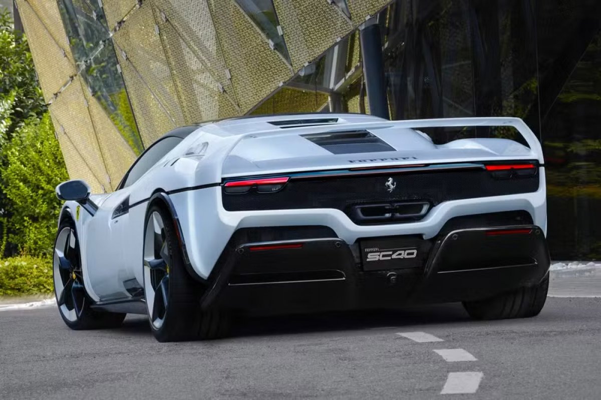 O diretor de design Flavio Manzoni assina a SC40 que tem perfil traseiro com lanternas estreitas, ao estilo da 296GTB e escapamento em titânio Carbono.