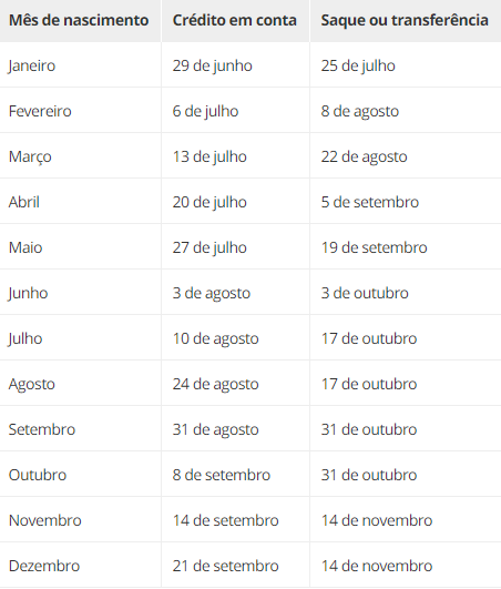 Calendário seguirá mês de nascimento do beneficiário