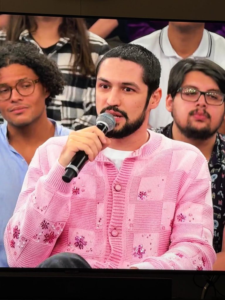 A participação do ator Gabriel Leone no Altas Horas virou assunto nas redes sociais, por ele está usando um cardigã Louis Vuitton, que custa $5900. Se for converter R$ 31.290,00. Quem pode pode!