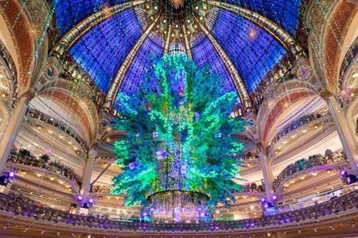 Assim como ocorre dede 1976, uma das atrações mais aguardadas do período é a árvore de Natal montada sob a cúpula da loja. Símbolo icônico, universal e emblemático da celebração cristã, a árvore assume o protagonismo no conto natalino. A cada 30 minutos as luzes se apagam para dar lugar a uma animação sonora e luminosa em que as árvores ganham vida própria, como num passe de mágica. As vitrines da loja também ganham décor temático e retratam a epopeia de Nordmann rumo à Terra, com direito a recriar um universo fantástico povoado pelos personagens do Planeta Sapin, que são divertidos, alegres e por vezes travessos.