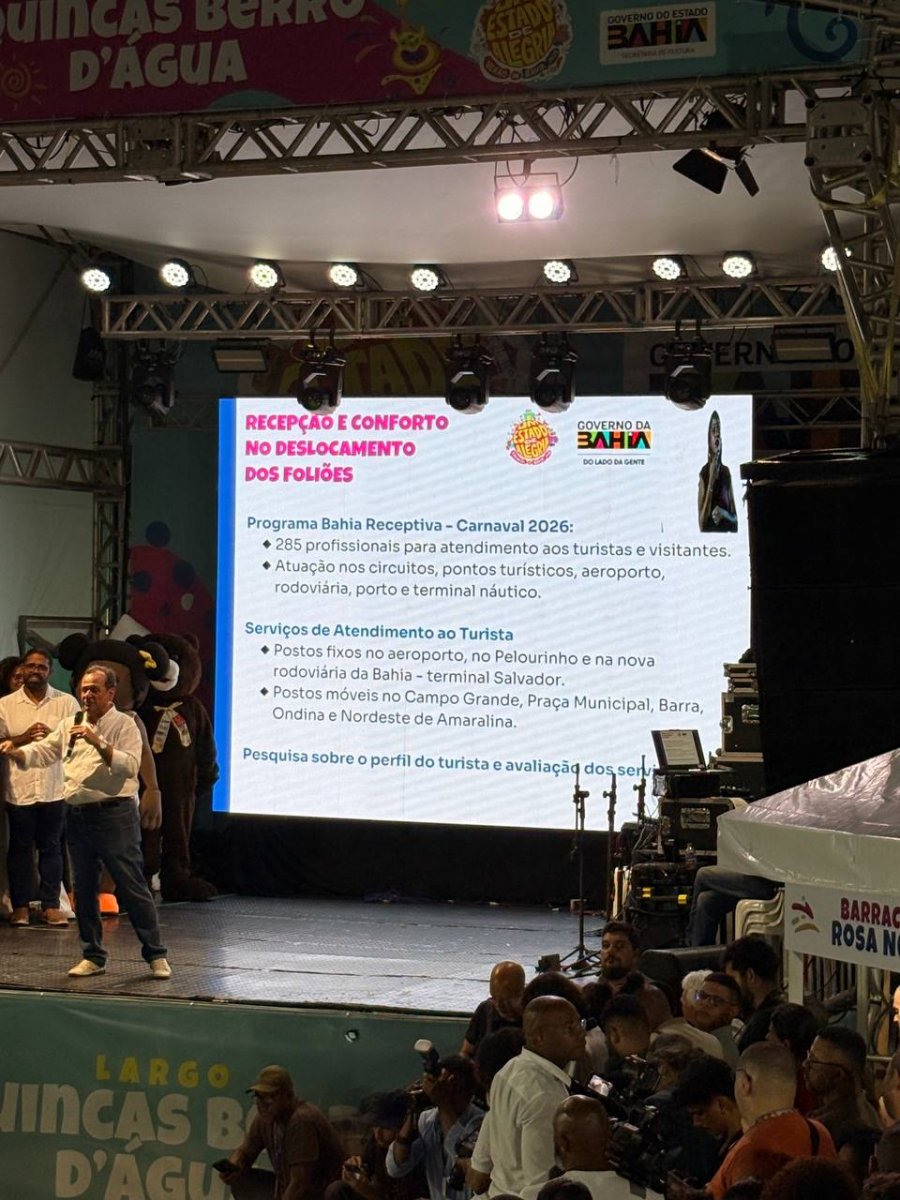 O governador Jerônimo Rodrigues (PT) anunciou nesta quarta-feira (4), no Centro Histórico, em Salvador, as ações e serviços do Governo do Estado para o Carnaval da Bahia de 2026.