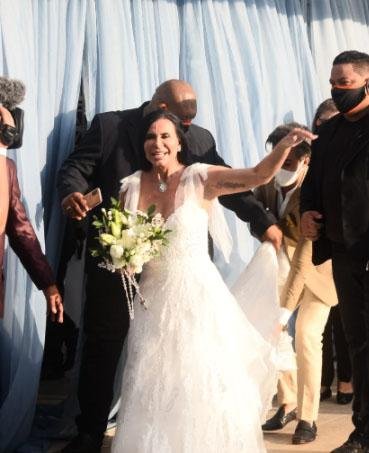 Gretchen oficializou na tarde desta quarta-feira o casamento com o músico Esdras de Souza. A cerimônia aconteceu em Belém, capital do Pará. Os dois se casaram dentro de uma balsa em uma celebração reduzida para cerca de cem convidados - a capacidade do espaço é para o dobro, cerca de duzentas pessoas. Ambos chegaram de barco para o enlace. A eterna rainha do rebolado usou um vestido superdecotado com aplicações de tule nas mangas. A cerimônia, foi transmitida ao vivo nas redes sociais por um jornal local. Nenhum dos 7 filhos da cantora compareceu - alguns porque moram fora do Brasil e outros porque estão em casa protegidos da pandemia de coronavírus.