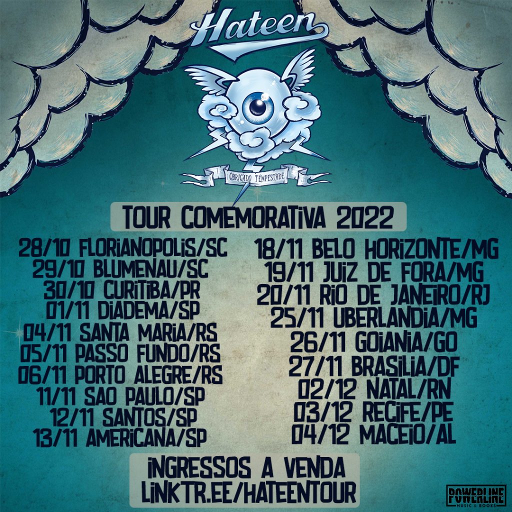 O Hateen embarca uma turnê de 19 datas pelo Brasil afora, entre outubro, novembro e dezembro deste ano, para comemorar 11 anos do icônico Obrigado Tempestade, um álbum especial tanto para a banda como para muitos fãs e pessoas ligadas no universo rock alternativo/emo.