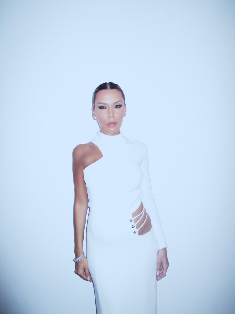 Para o jantar, Helena apostou em um look couture de Thierry Mugler, desfilado em 2015. O vestido longo off white traz recortes com amarração, manga longa em um dos braços e gola alta, além de uma fenda lateral, misturando sofisticação e um toque edgy no visual. Para finalizar, joias da designer Valentina Gorentzvaig, que reforçam a proposta atemporal da produção.