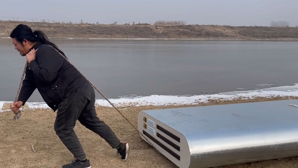 Para provar que sua invenção funciona, Handy Geng não disfarça a dificuldade que é transportar seu carregador “portátil”. O power bank é um colosso que mede 1,80 m de comprimento por 1,20 m de largura e 30 cm de altura. Para transportar o aparelho pela cidade, Geng precisou construir uma base com rodinhas.