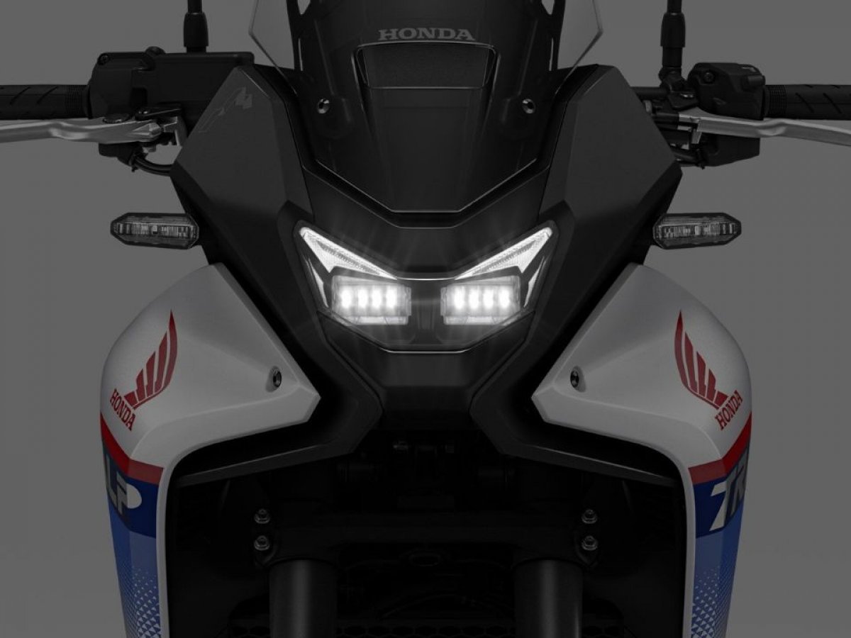 O design traz influência direta da Africa Twin, com conjunto óptico duplo em LED e carenagem superior com duto central de desvio de ar, combinada a um para-brisa fabricado em material sustentável Durabio. A posição de pilotagem é ereta, o assento tem 855 mm de altura e o painel TFT colorido de 5 polegadas permite personalização de informações e modos de pilotagem. O sistema ESS sinaliza frenagens bruscas, e os piscas contam com cancelamento automático.