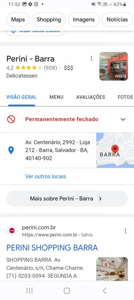 A Perini do Shopping Barra que foi inaugurada em 1989, fechou às portas, para a tristeza dos baianos. No perfil do estabelecimento no Google, já aparece a frase "Permanentemente fechado". Vale destacar que a unidade era a última funcionando dentro de shoppings na capital baiana.