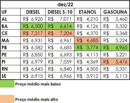 Já a gasolina foi comercializada por R$5,37, após registrar um aumento de 1,74%. O diesel foi vendido a R$6,78 do tipo comum, após um recuo de 0,80% enquanto o diesel- S-10 foi encontrado a R$6,86 após uma baixa de 0,58% no valor médio.