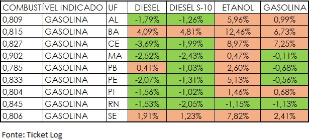 Índice do Ticket Log aponta aumento de 4,75% do etanol no Nordeste