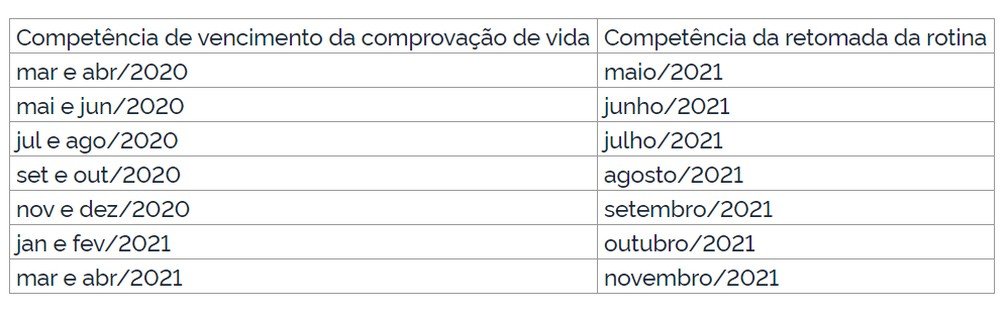Cronograma abrange as provas de vida que tiveram vencimento entre março de 2020 e abril deste ano