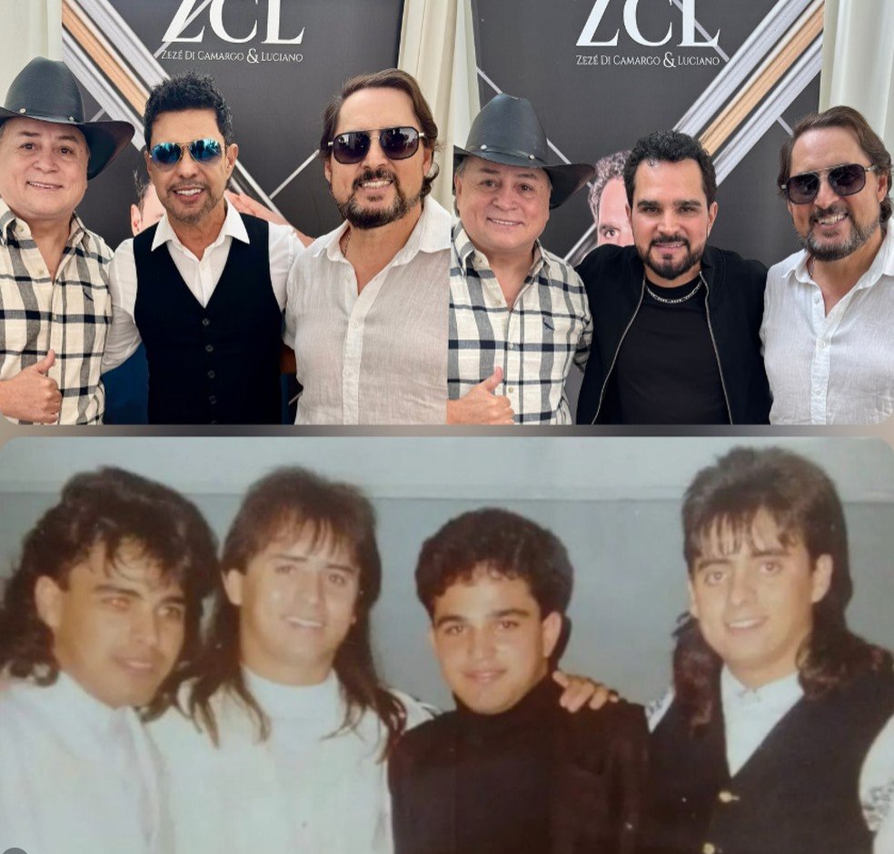 Após encontro em maio deste ano com a dupla Zezé di Camargo e Luciano, Mauri postou uma montagem relembrando o momento em que ele, Maurício e a outra dupla famosa fizeram um show juntos em Santos (SP) em 1991 — Foto: Reprodução/Instagram
