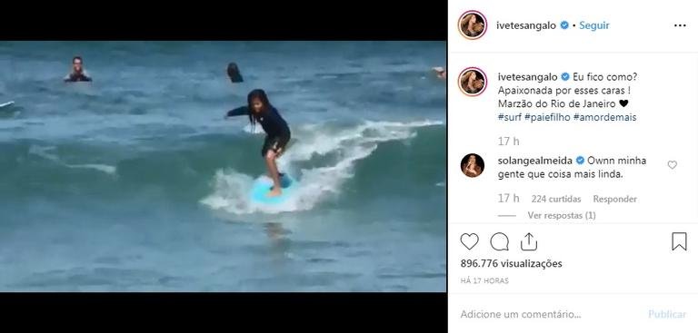 "Filho de peixe, peixinho é", disse uma. "Que lindos! E ele surfando direitinho", observou uma sobre o primogênito da artista. "Que demais! Estão mandando super bem! Marcelo leva o maior jeito", falou mais outra. "Own minha gente, que coisa mais linda", disse Solange Almeida. "Fofuras", escreveu Fernanda Gentil.