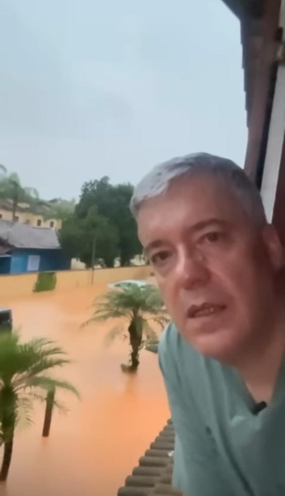 Roberto Kovalick usou suas redes sociais na manhã deste domingo (19) para mostrar que a chuva da madrugada inundou a cidade de Juquehy e, inclusive, a casa em que está hospedado. O jornalista mostrou as ruas da cidade ficaram inundadas e a água da chuva entrou na casa de muitos moradores. “Olha só como é que está a rua, completamente inundada. Mais de um metro de água. Não para de chover há mais de 6 horas. Carros boiando. E olha que eu estou aqui na parte alta da rua, quem está na parte mais baixa está sofrendo mais”, contou ele ao mostrar as ruas da cidade. Segundo o âncora do Hora Um, famílias precisaram ser resgatadas e foram abrigadas em casas mais altas. “Não para de chover e a água não para de subir. Tem muita gente em situação muito difícil por aqui”, afirmou. Ainda de madrugada, Roberto Kovalick mostrou como estava a situação da casa em que está hospedado. Com dois andares, a família conseguiu ficar no primeiro andar, mas o térreo apareceu completamente inundado.
