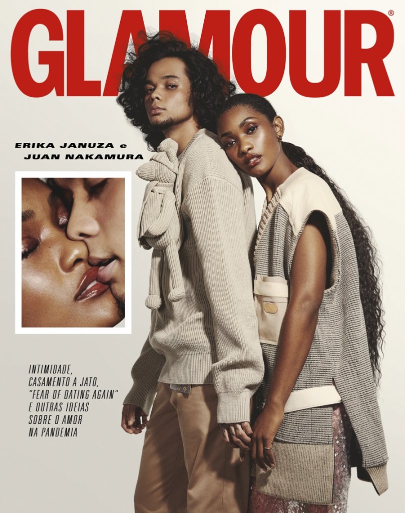 O lindo casal Erika Januza e Juan Nakamura estrela a capa da Glamour Brasil de junho! São 14 anos de diferença entre o casal que estrela pela primeira vez a capa de uma revista juntos. Para o primeiro beijo, que aconteceu no Carnaval de 2020, Erika pediu permissão para a mãe de Juan — a colega de trabalho Carol Nakamura. Na publicação, o casal conta que o flerte começou muito antes no elevador do prédio que moravam, também revelam sua rotina morando juntos e os planos para casamento e filhos.