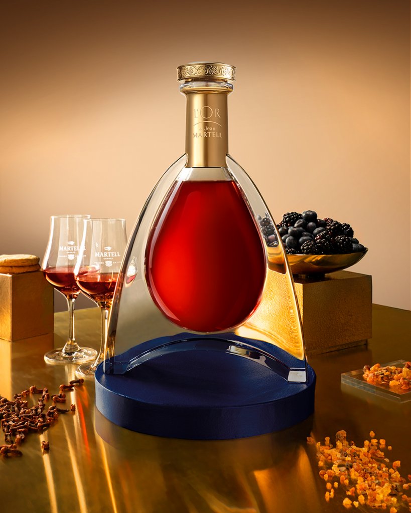 Essa complexa composição inclui diferenciais consideráveis, a começar pelas raras áreas onde as uvas são cultivadas, como Grande Champagne e Borderie, considerados “grand crus”, e que no conjunto final contribuem para uma aura de elegância, riqueza e poder, típicas deste icônico conhaque. É produzido a partir de 400 diferentes “eaux-de-vies”, algumas delas, inclusive, centenárias. É destilado duas vezes em pequenos alambiques de cobre e envelhecido em barris de nobre carvalho francês. Apresenta graduação alcóolica de 40%, e cor de um âmbar intenso com matizes de mogno. L’Or é a mais pura e autêntica expressão da Maison Martell.