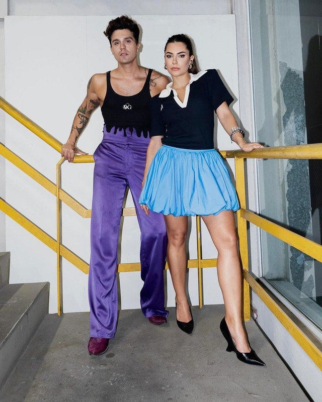 Luan Santana agitou a web ao surgir com um look ousado, para uma apresentação em Manaus. Em seu perfil no Instagram, o sertanejo compartilhou uma foto ao lado de Jade Magalhães, com quem reatou romance, e exaltou a beleza da influenciadora. "Eu e minha gata indo pra Luan City", escreveu na legenda da publicaçãoNa imagem, o artista aparece aliando regata preta Dolce & Gabbana, de R$ 2.800, a calça de cetim roxa.