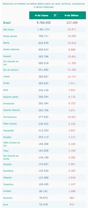 Confira abaixo a situação epidemiológica em todos os estados: