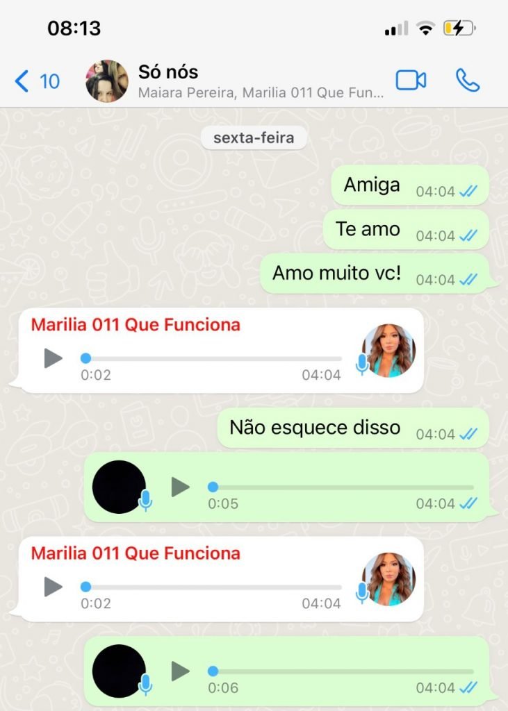 Após a perda da amiga Marília Mendonça, Maraisa tem usado suas redes sociais como uma ferramenta para dividir o peso da dor. A cantora postou em seu Twitter, o print da última conversa com Marília, no grupo das duas com a também cantora Maiara, onde se declarava: “Amo muito vc! Não esquece disso”. Na legenda escreveu: “Obrigada Deus pela oportunidade de poder me despedir”.