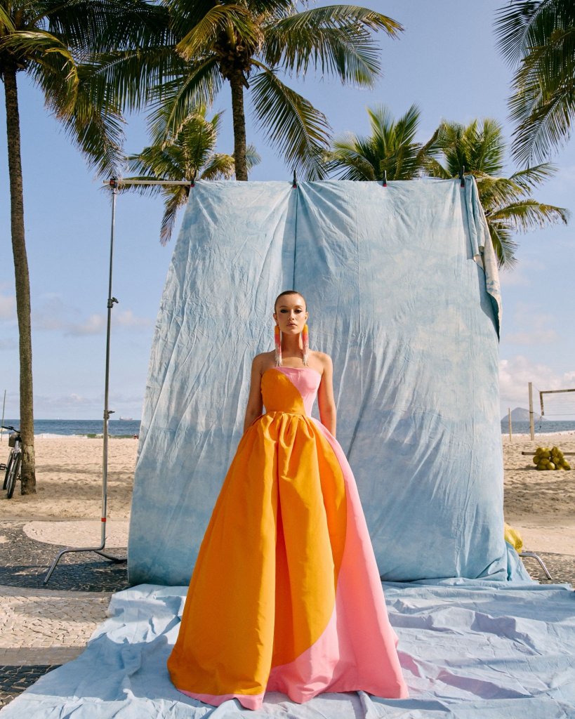 Maria Braz (@mariabbraz) surgiu deslumbrante no Baile da Vogue ao surgir com uma proposta que une memória, identidade e alta-costura. Frequentadora do evento desde os 18 anos, quando o evento ainda acontecia em São Paul, ela celebra a tradição de nunca ter perdido uma edição e de cultivar, desde a infância, o amor pelo Carnaval. “Cresci vendo meus pais frequentando a Sapucaí e bailes de carnaval. Sempre foi um momento do ano que eu amava me fantasiar”, relembra.Para a edição com o tema Tropical Couture, Maria escolheu traduzir o tropical sob a ótica da alta-costura, afastando-se da fantasia literal. O vestido assinado por Carolina Herrera aposta em uma construção escultural com volumes marcantes e combinação vibrante de rosa e laranja, evocando o pôr do sol carioca e a energia pulsante da folia. A silhueta estruturada transforma cor e forma em protagonismo, reforçando a sofisticação como ponto central da narrativa.