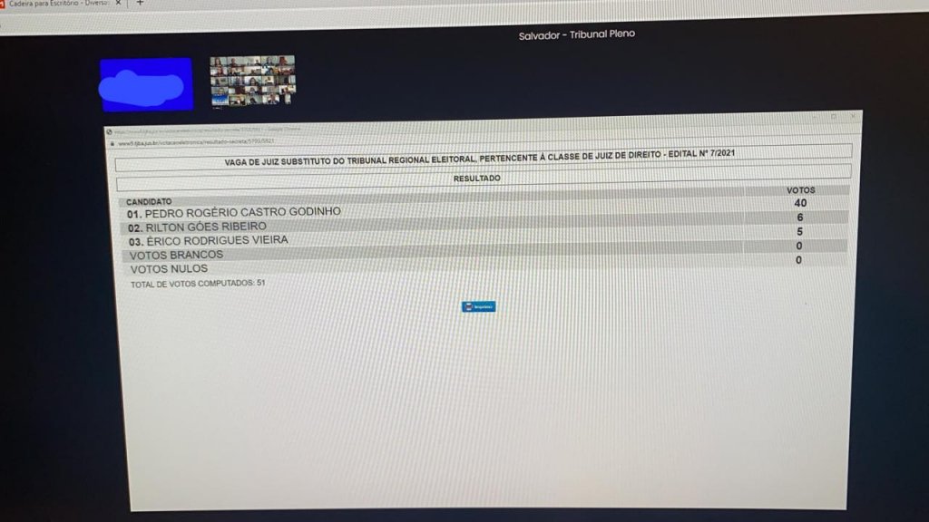 O fato no entanto que marcou a eleição foi a ligação do terceiro colocado, Baltazar Miranda para o desembargador Carlos Roberto - esse internado em UTI em tratamento de Covid-19 - para pedir seu voto.