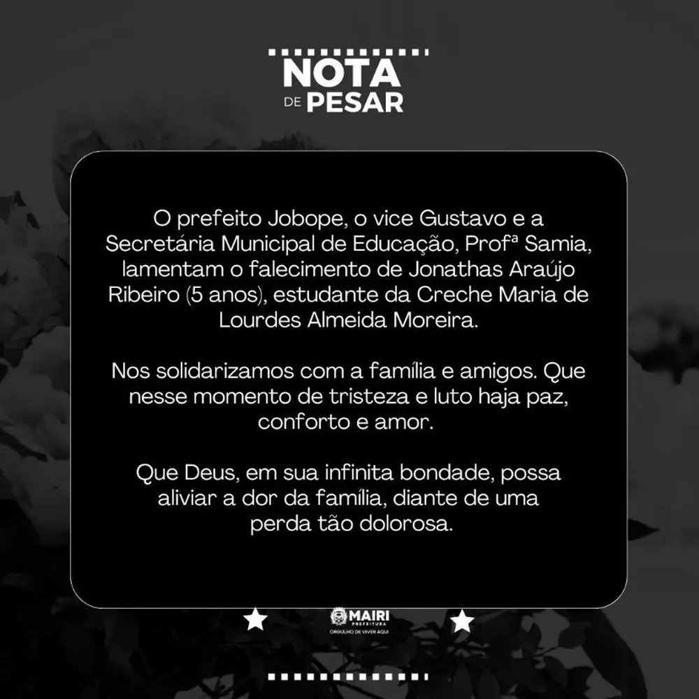 Jonathas Araújo Ribeiro, de 5 anos, morreu após ser baleado durante uma confusão na Avenida Sete de Setembro, na cidade de Mairi, a cerca de 300 km de Salvador, na madrugada do último domingo (15). Até o momento, ninguém foi preso.