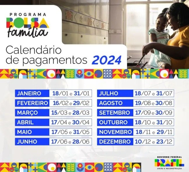 O Ministério do Desenvolvimento e Assistência Social, Família e Combate à Fome anunciou nesta terça-feira (27) o calendário de pagamentos do programa Bolsa Família para o ano de 2024. Os beneficiários poderão consultar as datas de liberação dos recursos, que seguem a organização pelo último dígito do Número de Identificação Social (NIS) presente no cartão do Bolsa Família.
