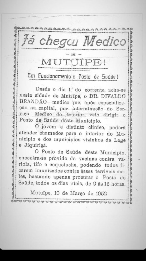 Segundo a publicação, Brandão foi levado para trabalhar em Mutuípe pelos ex-prefeitos Julival Rebouças e Clélia Rebouças durante o surto de febre tifóide na região. O médico atendia as áreas de clínica médica geral e ginecologia.