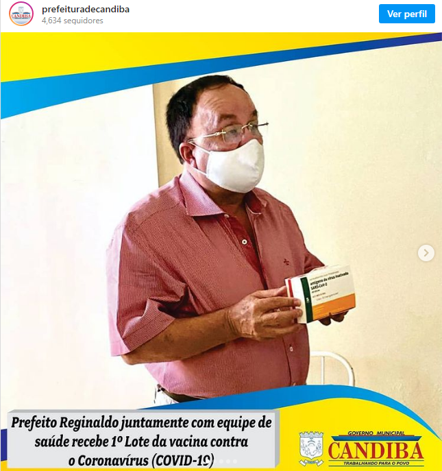 O Ministério Público do Estado da Bahia (MP-BA) informou nesta quarta-feira (20), que vai investigar o caso de um prefeito na Bahia que publicou na última terça-feira (19), em um perfil da prefeitura nas redes sociais imagens dele recebendo a primeira dose da vacina contra a Covid-19, doença causada pelo novo coronavírus. Trata-se do prefeito de Candiba, no sudoeste do estado, Reginaldo Martins Prado, 60 anos. Após a postagem, ele foi alvo de críticas nas redes sociais.