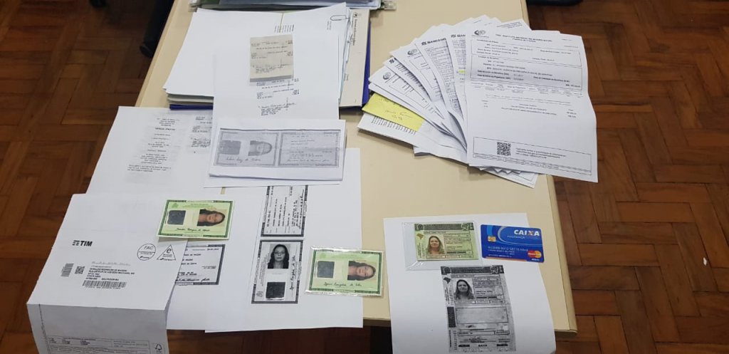 Foi apreendido vários documentos falsos e formulários para solicitação dos empréstimos