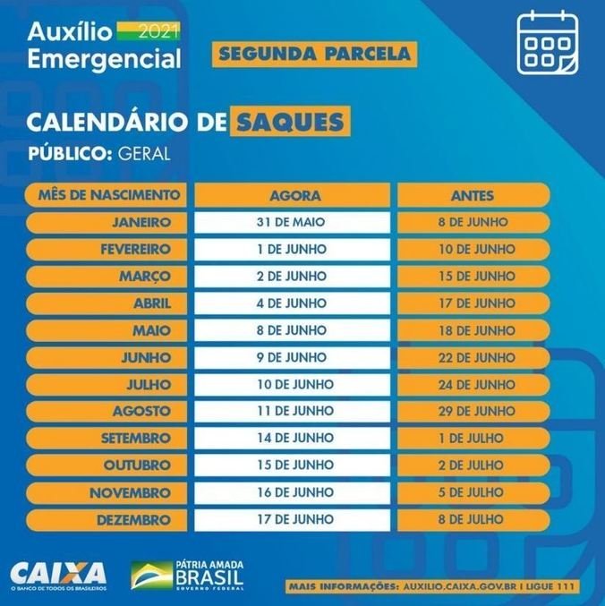 A Caixa Econômica Federal libera nesta segunda-feira (31) o saque em dinheiro da segunda parcela do auxílio emergencial ao nascidos em janeiro. Antes, esse público só podia movimentar o dinheiro recebido através do aplicativo Caixa Tem, conde os beneficiários conseguiam pagar boletos, comprar pela internet e pelas maquininhas de estabelecimentos comerciais.