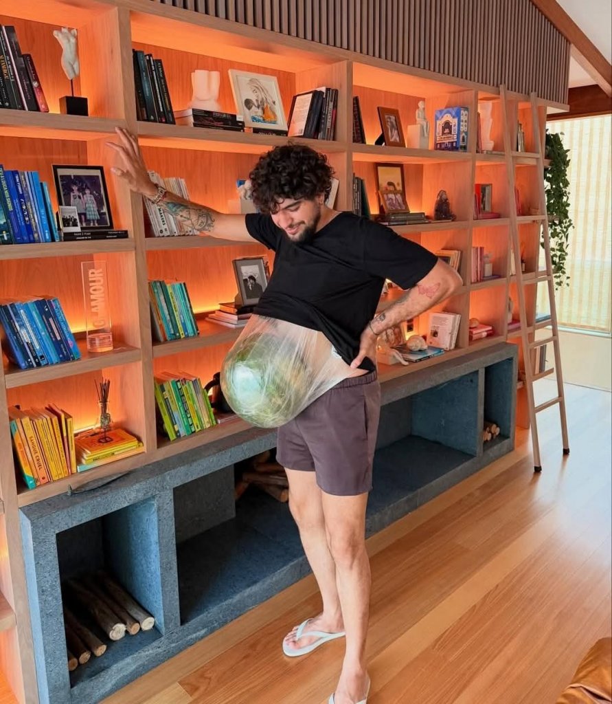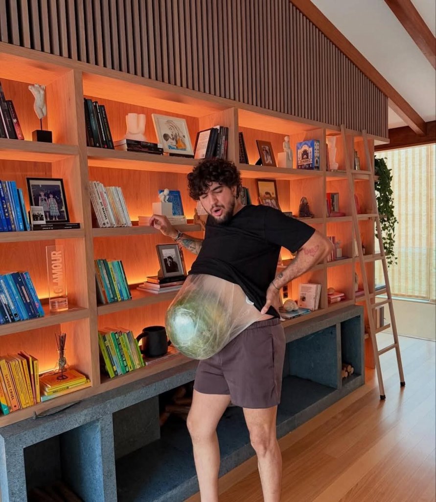 O cantor Nattanzinho compartilhou uma ideia que sua amada Rafa Kalimann teve no final de sua gestação: amarrar uma melancia na barriga dele! “Rafaella decidiu amarrar um melancia em mim pra eu ver ‘o que é bom pra tosse’. Entendo vocês agora 😮💨 🍉”, escreveu no post.