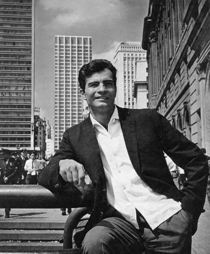 Tarcísio Meira, sem dúvida nenhuma, foi um dos maiores astros da tv brasileira. Se ainda estivesse por aqui, ele estaria fazendo 90 anos, nesse dia 5 de outubro. Na imagem , o ator está no Centro de São Paulo em meados dos anos 60. A direita o ex prédio do Mappin.